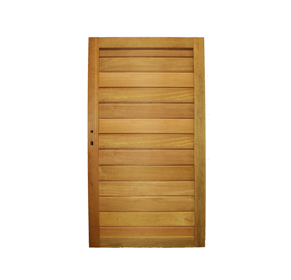 Wilt u een stevige schutting tuindeur kopen van 100% officieel bankirai hout? Deze luxe rechtsdraaiende poort deur van hardhout is 180 cm hoog en 100 cm breed. De massieve schuttingdeur van A-kwaliteit wordt geleverd zonder aanslaglijst voor uw poort exclusief schanieren, schroeven en bouten. Deze massieve poort deur heeft een dikte van 4.5 cm. Bevestig deze zwaarwegende bankirai hardhout poort deur tussen palen van minimaal 8 x 8 cm dikte. Kies hierbij uit luxe bankirai of voor de voordelige Azobe palen. Deze hardhout tuinpoort deur weegt 48 kilo.